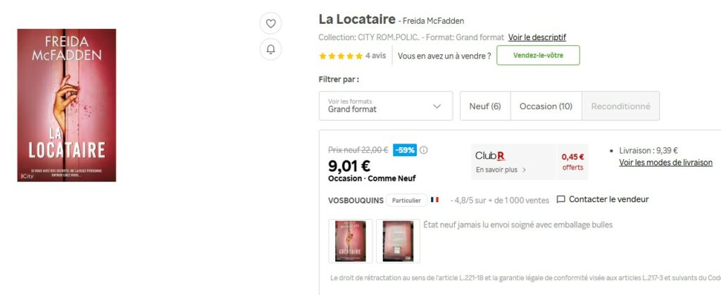 Tout d’abord, le prix des nouveautés est moindre puisqu’on économise, par exemple, 7 euros sur ce livre sorti il y a peu de temps (et non encore disponible en poche au moment où ses lignes sont écrites) :