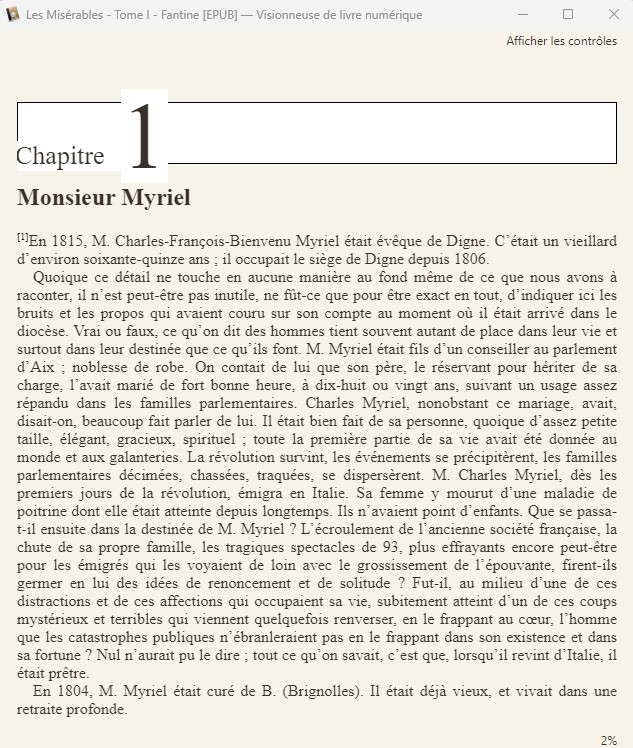 Pour y accéder, vous devez ouvrir un ebook pour le lire grâce à la visionneuse présente dans le logiciel. Une fois le livre ouvert, vous aurez une fenêtre de ce type :