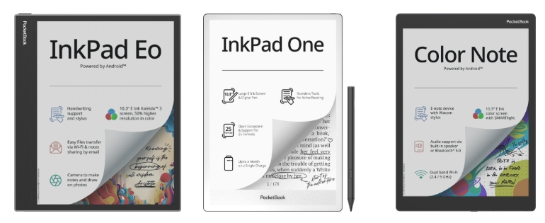 En supplément des liseuses, Pocketbook propose aussi des machines avec stylet et conçues pour la prise de notes et le travail sur documents PDF (pour les annotations).