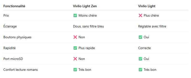 Mais si un de ces points est important pour vous, la Vivlio Light reste la meilleure option.