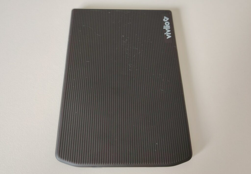 Après une rapide inspection de la liseuse, on remarque des différences importantes avec le reste de la gamme et sa grande sœur la Vivlio Light : pas de boutons sous l’écran et pas de port d’extension pour carte de stockage SD.